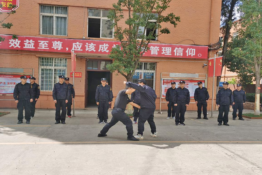 早上9點(diǎn),隨著一聲嘹亮的集合哨響起,十四冶大院旗桿處的空曠地帶便成了“軍事訓(xùn)練基地”,參訓(xùn)隊(duì)員身穿護(hù)衛(wèi)隊(duì)作訓(xùn)服在隊(duì)長的口號(hào)下進(jìn)行軍事演練。整個(gè)集訓(xùn)期間就列隊(duì)、站軍姿、正步擺臂、敬禮、散打及短棍盾牌術(shù)等六項(xiàng)科目進(jìn)行強(qiáng)化訓(xùn)練。訓(xùn)練以突出實(shí)戰(zhàn)為原則,著力提高護(hù)衛(wèi)隊(duì)員的實(shí)戰(zhàn)本領(lǐng)和身體素質(zhì),確保參訓(xùn)隊(duì)員按要求牢固掌握技能,做到“召之即來、來之能戰(zhàn)、戰(zhàn)之必勝”。通過集訓(xùn),進(jìn)一步提高公司護(hù)衛(wèi)隊(duì)伍作風(fēng)紀(jì)律、軍事技能和應(yīng)急處突能力。