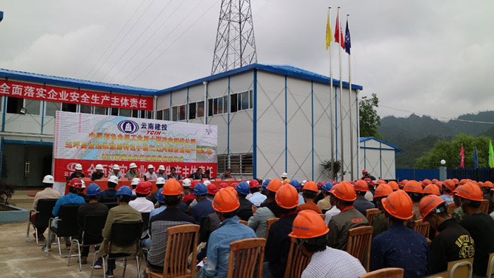 6月14日,第七直管部在蘭坪縣金頂鎮(zhèn)旅游特色小鎮(zhèn)建設(shè)項(xiàng)目及沘江河綜合治理工程項(xiàng)目部,開展了以“全面落實(shí)企業(yè)安全生產(chǎn)主體責(zé)任”為主題的宣講活動(dòng)暨2017年“安全生產(chǎn)活動(dòng)月”啟動(dòng)儀式。第七直管部班子成員、蘭坪縣政府項(xiàng)目指揮部的領(lǐng)導(dǎo)及項(xiàng)目部全體人員參加儀式。