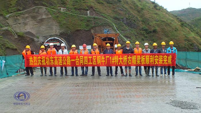 “紅軍不怕遠征難,萬水千山只等閑”!第二直管部功東高速項目的“紅軍”們沖破重重困難,攻破又一關(guān)鍵節(jié)點目標,6月29日,順利完成了一合同段四工區(qū)銅牛廠1號特大橋右幅T梁的安裝作業(yè)!