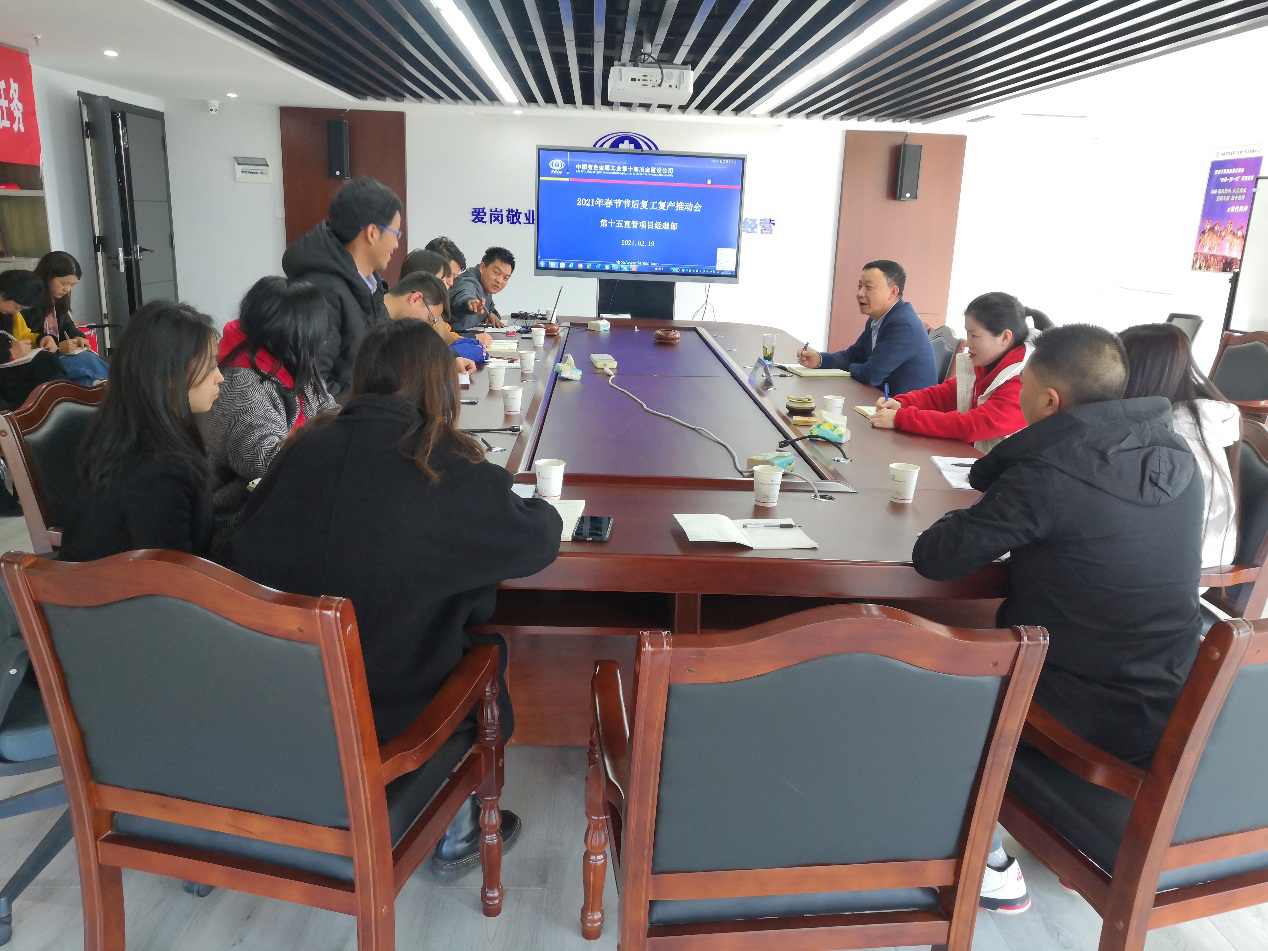 2月19日,公司副董事長(zhǎng)黃偉到第十五直管項(xiàng)目經(jīng)理部召開復(fù)工復(fù)產(chǎn)推進(jìn)會(huì)。會(huì)上,直管項(xiàng)目經(jīng)理部副經(jīng)理趙世清對(duì)項(xiàng)目經(jīng)理部2021年各項(xiàng)指標(biāo)任務(wù)情況,項(xiàng)目經(jīng)理部班子成員及主要管理人員分工進(jìn)行介紹,對(duì)新建項(xiàng)目的工期節(jié)點(diǎn)情況、接下來的目標(biāo)計(jì)劃作了詳細(xì)的匯報(bào)。黃副董就當(dāng)前全面復(fù)工復(fù)產(chǎn),并結(jié)合十五直管項(xiàng)目經(jīng)理部目前的發(fā)展形勢(shì)提出幾點(diǎn)見意和要求。