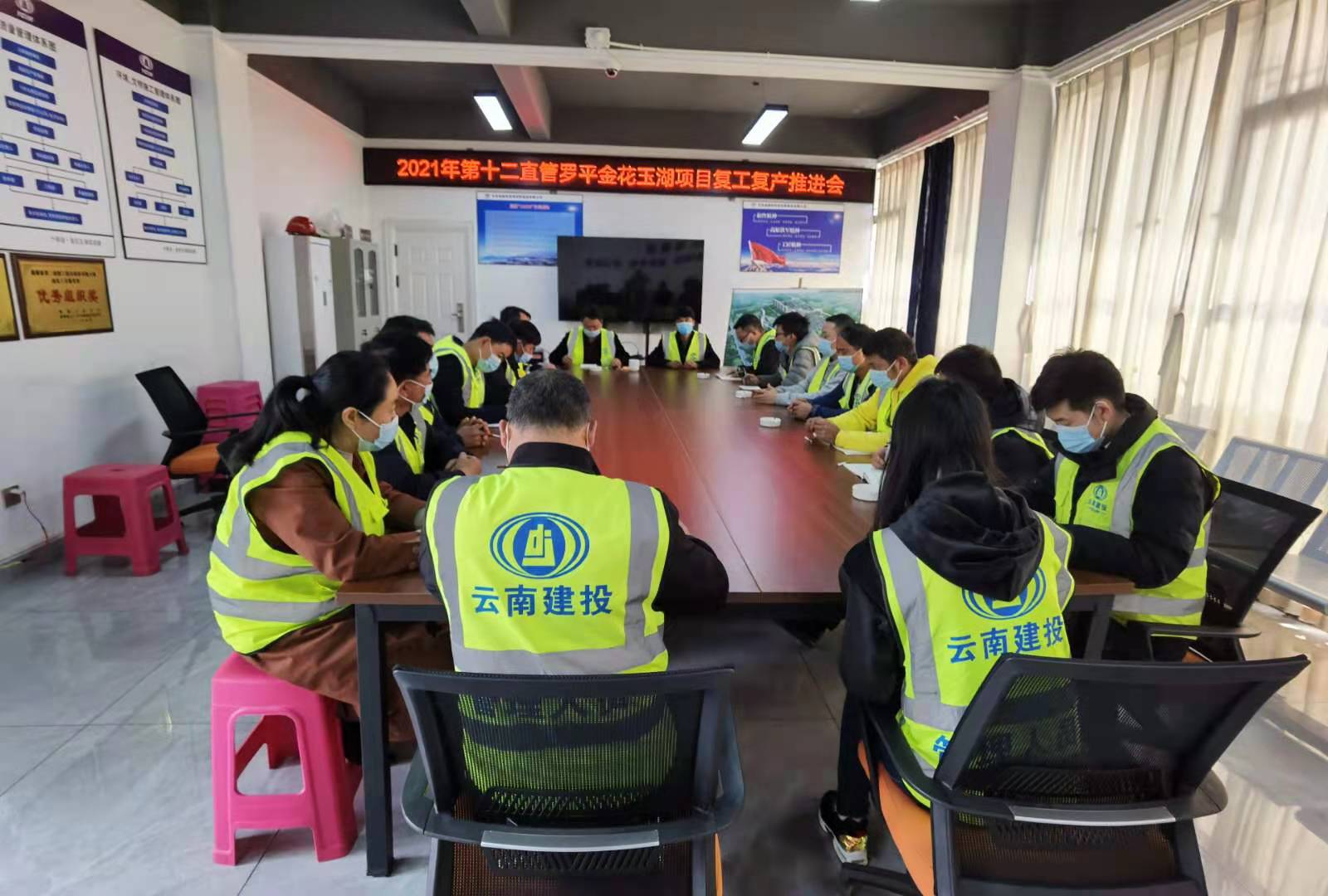 2月21日下午第十二直管項(xiàng)目經(jīng)理部羅平金花玉湖旅游文化小鎮(zhèn)項(xiàng)目部根據(jù)公司、直管項(xiàng)目經(jīng)理部、羅平縣建設(shè)局、羅平縣疫情防控指揮部相關(guān)要求,結(jié)合公司2月21日安全生產(chǎn)經(jīng)營工作會要求,組織召開了節(jié)后復(fù)工復(fù)產(chǎn)推進(jìn)會,為項(xiàng)目正常生產(chǎn)做好各項(xiàng)準(zhǔn)備工作。