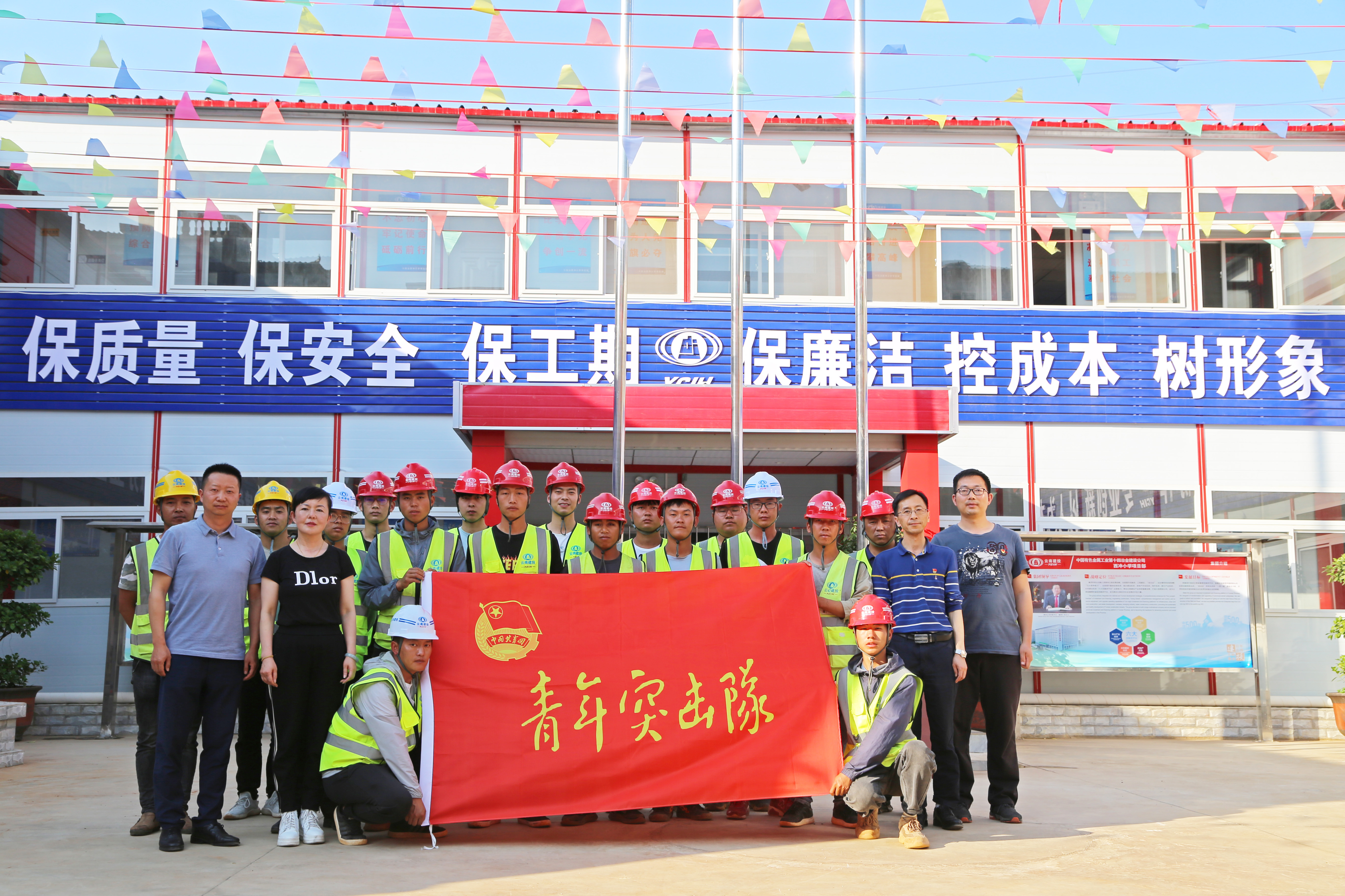 4月23日,西沖小學(xué)改擴(kuò)建項(xiàng)目部舉行“青年突擊隊(duì)”授旗儀式,公司黨委書記、副董事長孫志堅(jiān)參加。